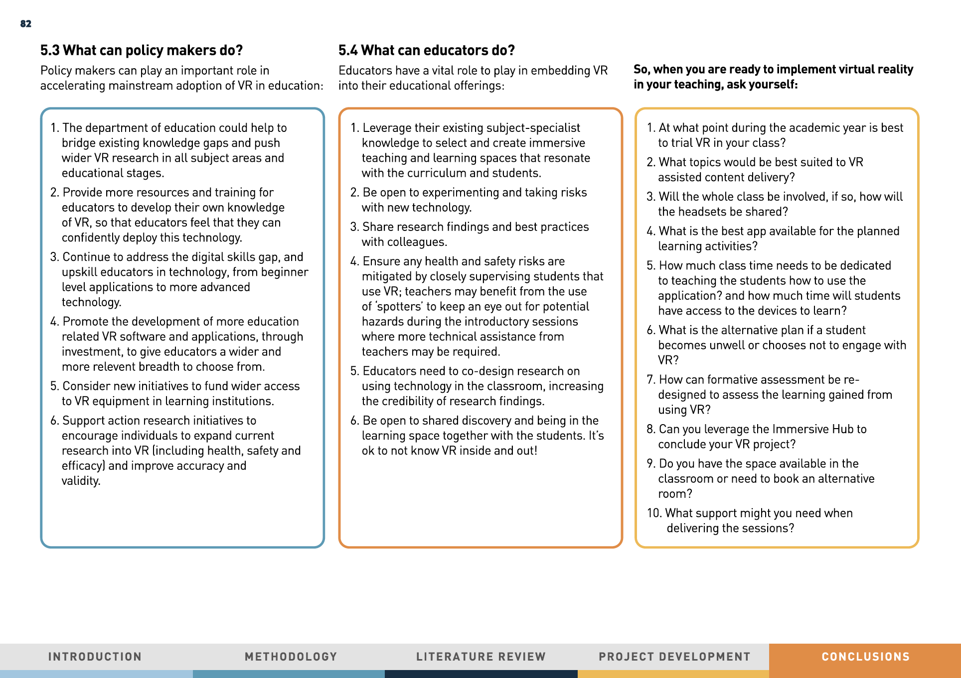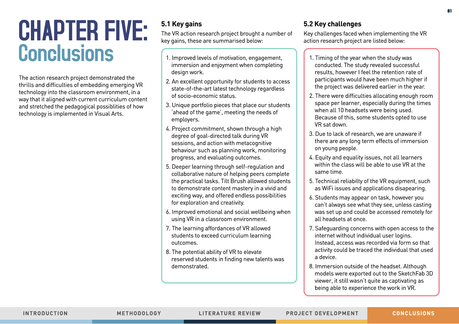 A review of VR in education, followed by the implementation of VR technology in the Graphic Design curriculum.